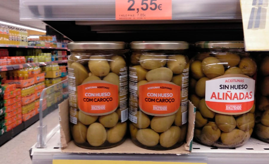 - Manzanilla con hueso calibre mediano sabor natural y sabor anchoa en la plataforma de Villadangos, (Castilla León).